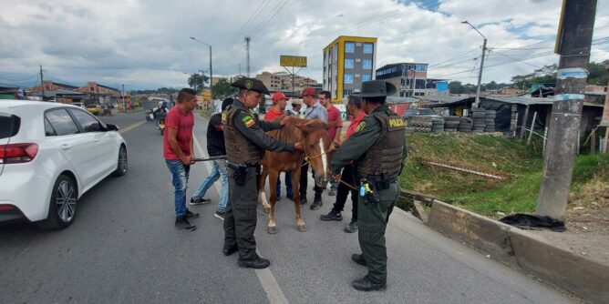 Gracias a la pronta reacción de nuestro grupo Gria, la Policía Ambiental, Policía de Carabineros y guías caninos se logró el rescate de esta yegua, que al parecer fue maltratada al golpear con un carro en el sector de la Variante y cuyo propietario huyó.