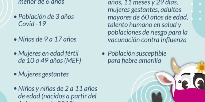 La Administración Municipal “Creo en Popayán” hará parte de la gran Jornada Nacional de Intensificación de Vacunación, que se llevará a cabo del 14 al 19 de noviembre de 2022 en 15 puntos habilitados en la ciudad. Esta jornada está dirigida a niños menores de 6 años, niñas de 9 a 17 años, mujeres gestantes y en edad fértil de 10 a 49 años, población susceptible para influenza y la vacunación Covid-19 se hará desde los 3 años.