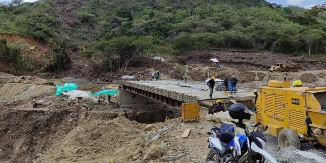 1. Se fundió losa del tablero de 30m de longitud en la vía provisional y se iniciaron las obras de construcción de los accesos.