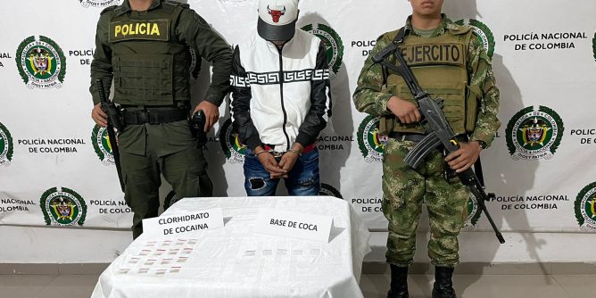 Las autoridades confirman que en el marco del Comando Situacional y en desarrollo de actividades de patrullaje, registro y control por parte del componente policial de la Estación de Policía de El Bordo (Patia) en compañía de unidades militares adscritas al batallón de alta montaña No. 4, en el barrio Hueco Lindo casco urbano de esta municipalidad, se logra la captura en flagrancia de un ciudadano de 25 años de edad por el delito tráfico, fabricación y/o porte de estupefacientes y la incautación de 16 dosis de base de coca y 05 dosis de clorhidrato de cocaína. El capturado y la sustancia fueron puestos a disposición de la Fiscalía General de la Nación.