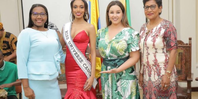 La Gestora Social del Cauca Deisy Caracas Vásquez y la Coordinadora de Cultura Enelia Salinas, realizaron la imposición de banda a Lizeth Mayesty Sinisterra Ramírez como la nueva Miss Universe Cauca 2023 a uno de los certámenes de belleza más importantes del país.