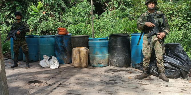 En el desarrollo de dos operaciones, una de ellas conjunta con el Ejército Nacional, la Armada de Colombia localizó y destruyó dos laboratorios para el procesamiento de pasta base de coca en los departamentos de Cauca y Valle del Cauca.