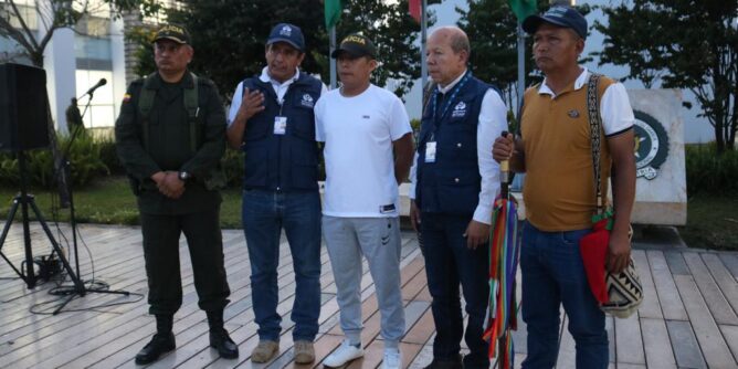 Jorge Enrique Calero Chacón, defensor delegado para la prevención y la transformación de conflictividad social fue el encargado de informar sobre la entrega del patrullero Poto Pazú, indicando que se encuentra bien de salud.