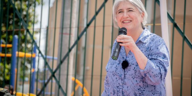 El recorrido continuó con la entrega del parque en el barrio Las Garzas, que beneficia a 3.600 habitantes y que fue financiado en su totalidad por el Gobierno Nacional, con más de $1.000 millones. Incluye una cancha múltiple, sillas y gimnasio. Allí, los niños de la comunidad sembraron un árbol guayacán como símbolo de vida.