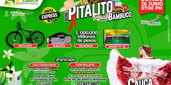 Para ganar premios durante la realización en vivo del Sorteo Express en Pitalito tendrán que conéctate a las 07:00 pm por la fanpage de tu Lotería del Cauca.