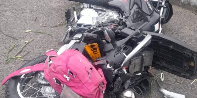 Grave accidente de tránsito en el norte de Popayán. Conductor de esta motocicleta de placa MWU 97-G, murió al chocar contra el separador de la vía Panamericana cerca de la Piedra Norte.