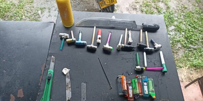 Actividades de registro y control realizadas por los uniformados de la Seccional de Protección y Servicios Especiales de la Policía Nacional de los Colombianos en el Barrio Bolívar, permitió la incautación de armas blancas y sustancias psicoactivas generadoras de inseguridad en este importante sector de la comuna tres.