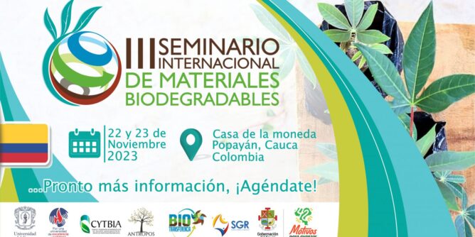 Este importante seminario internacional de materiales biodegradables se estará cumpliendo en el centro de convenciones, casa de la moneda en Popayán durante los días 22 y 23 de Noviembre de 2023.