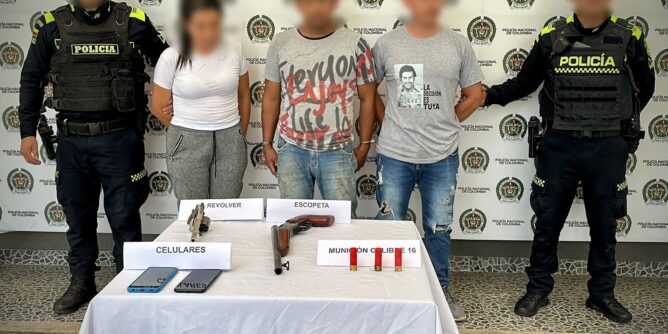 Los capturados serían dos hombres y una mujer con edades entre los 22 y 35 años, a quienes se les imputarían cargos por los delitos de fabricación, tráfico, porte o tenencia de armas de fuego, accesorios, partes o municiones.