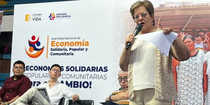 La ministra del Trabajo, Gloria Inés Ramírez Ríos, en medio de la Asamblea Nacional de Economía Popular, que se adelanta en la ciudad de Neiva, le pidió al director de la SAE, Sociedad de Activos Especiales, prioridad con las organizaciones cooperativas y comunitarias para la entrega de bienes incautados a la mafia.