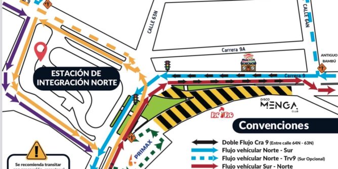 MOVILIDAD FUTURA S.A.S informa a la comunidad que por motivos de construcción de la Estación de Integración Norte y conexiones viales asociadas al mejoramiento de la intersección vial de la carrera 9 con transversal 9A; a partir del lunes 28 de agosto, se intervendrá temporalmente la carrera 9, sentido Sur – Norte, en el tramo comprendido entre la antigua Glorieta Bellavista y la calle 64N. Por lo tanto, se manejará doble flujo en la carrera 9, sentido Norte-Sur entre la calle de la transversal 9 y la calle 64N, de acuerdo con el Plan de Manejo de Tránsito (PMT).