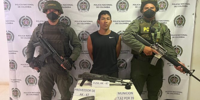 En el corregimiento de Siberia (Caldono) vereda la Buitrera nuestras unidades policiales de la jurisdicción y la UBICAR, lograron la captura en flagrancia de una persona de 26 años de edad, a quien se le incauta un arma de fuego tipo fusil AK-47 con un proveedor y munición calibre 7.62. posterior a la captura y durante el proceso de identificación se pudo establecer que esta persona posee un antecedente penal por el delito de fabricación, Tráfico y Porte de Armas de Fuego o Municiones en el año 2018.
