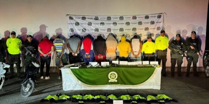 En el barrio Zamorano, del municipio de Palmira en el Valle del Cauca, unidades de la Sijin, dieron captura a ocho personas, quienes fueron sorprendidos portando armas de fuego y prendas de uso privativo de la Policía Nacional.