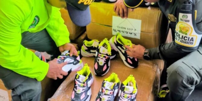En medio de los registros se encontró que el primer contenedor estaba lleno con más de 18 mil pares de calzado deportivo de diferentes marcas y colores, y 310 sillas plásticas.