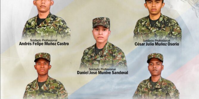 Los soldados fueron identificados como Andrés Felipe Muñoz Castro, Sergio Muñoz Zapata, César Muñoz Osorio, Luis Ángel Navarro Banquet y Daniel José Munive Sandoval.
