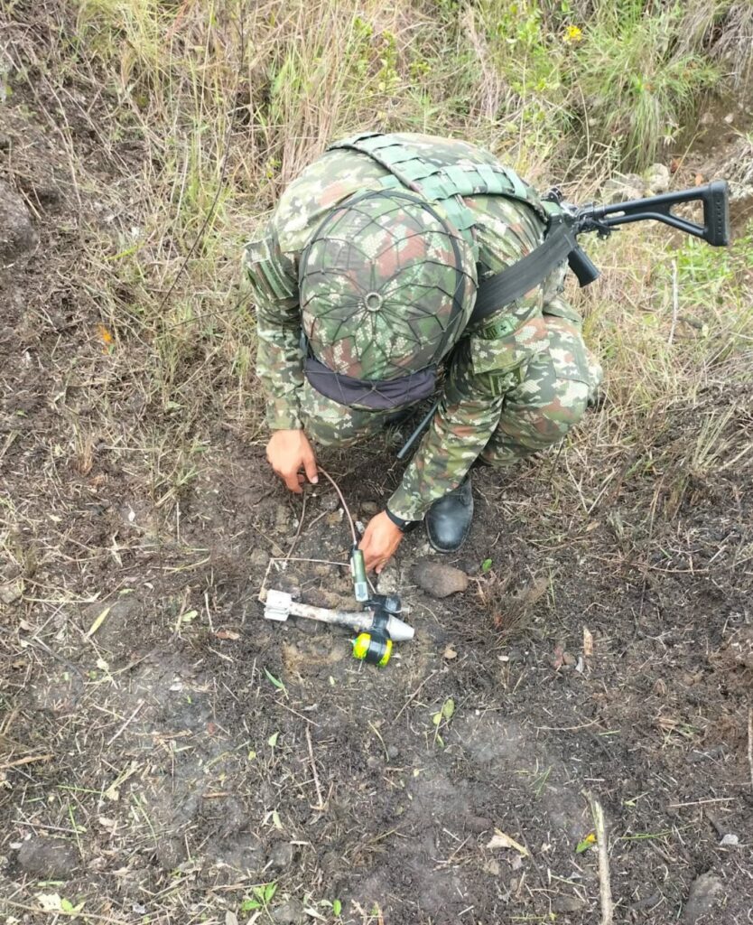 En las ultimas horas, en medio de operaciones desarrolladas por tropas del Batallón de Infantería Liviana N.º 7 de la Brigada 29, el Ejército Nacional localizó y destruyó de manera controlada seis artefactos explosivos improvisados instalados en la vereda Víbora, del municipio de Inzá, en el oriente del departamento del Cauca.