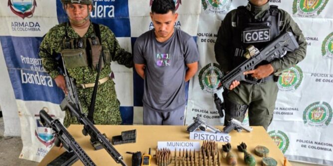 La Fiscalía General de la Nación presentó ante un juez penal de control de garantías a un hombre identificado como Brayan Andrés Robayo Collazos, quien habría sido sorprendido en un inmueble del distrito de Buenaventura en posesión de armas de uso restringido y exclusivo de las Fuerzas Armadas, así como propaganda alusiva a las disidencias de las Farc.