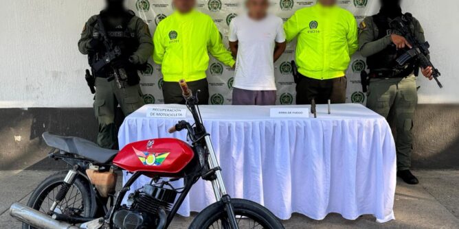 De acuerdo con las autoridades, la captura de esta persona se logró mediante el diligenciamiento de un allanamiento en el barrio Villa Occidente. Así mismo, se indicó que en el lugar se logró la incautación de un arma de fuego tipo pistola calibre 22 con su respectivo proveedor, así como la recuperación de una motocicleta.