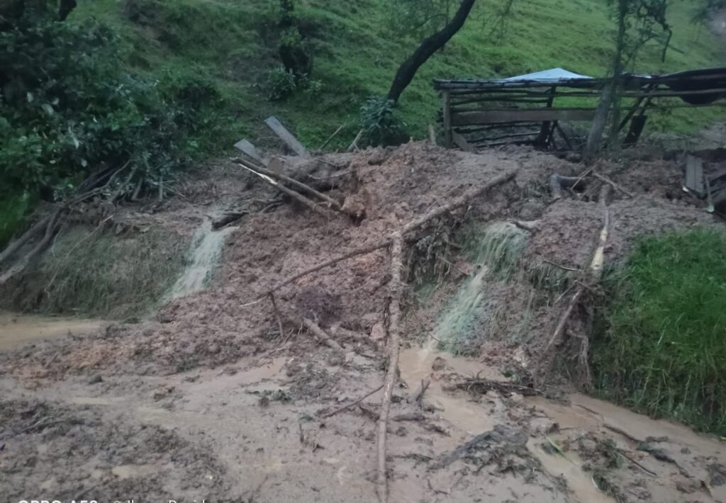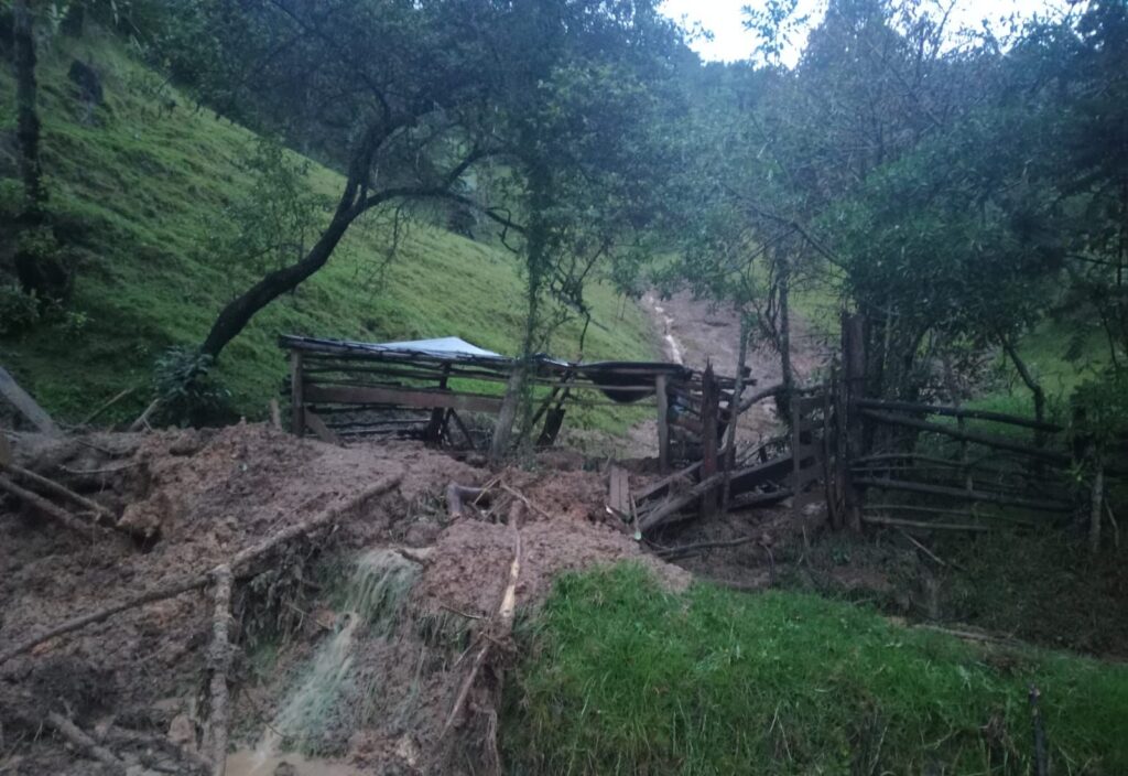 De acuerdo con lo informado por la comunidad, las intensas lluvias provocaron un enorme deslizamiento, causando graves afectaciones a una familia, quien perdió bovinos a causa del movimiento de tierra.