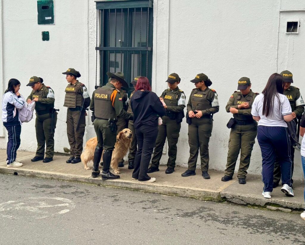 Durante el desarrollo del procedimiento en una institución educativa del Sector Histórico de la ciudad, se efectuaron registros preventivos a personas y verificación de pertenencias, con el propósito de fortalecer la seguridad del entorno escolar. Estas acciones buscan prevenir situaciones que puedan poner en riesgo su integridad física y emocional, así como fomentar ambientes protectores en espacios educativos.