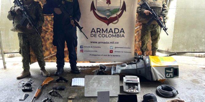 Recientemente, en medio un amplio operativo desarrollado por tropas de la Armada Nacional, Ejército Nacional y apoyo de la Fuerza Aeroespacial Colombiana, se logró la ubicación de un deposito ilegal de armamento perteneciente a la estructura “Jaime Martínez” de las disidencias de las FARC, en zona rural de López de Micay.