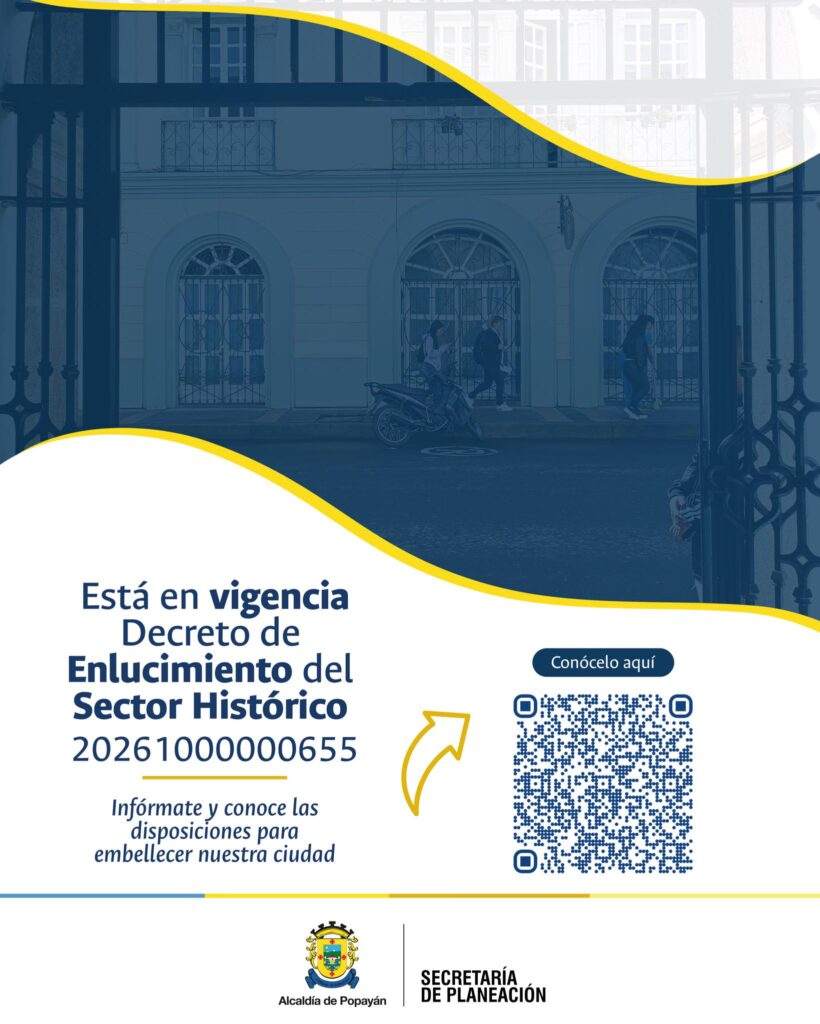 La Alcaldía de Popayán anunció la entrada en vigencia del Decreto de Enlucimiento de Fachadas del sector histórico y su zona de influencia, como parte de las acciones orientadas a garantizar que la ciudad esté debidamente presentada para la próxima Semana Santa.