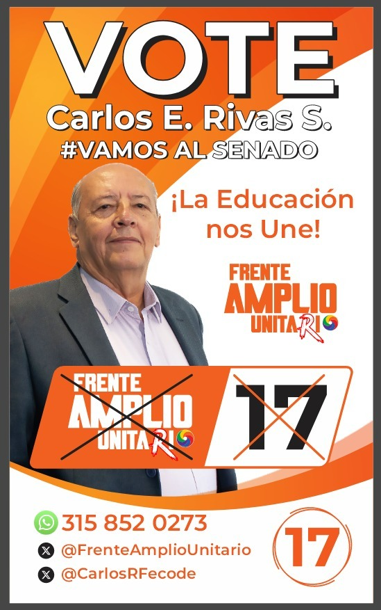 Actualmente, cientos de docentes, trabajadores, sindicalistas, organizaciones defensoras de derechos humanos y demás del Cauca, Valle del Cauca, Nariño, Huila y Tolima, se han unido a su causa de defender la educación y el trabajo digno desde el senado, por ello están invitando para que más colombianos ayuden con su voto este 8 de marzo, marcando en el tarjetón la casilla numero 17 del Frente Amplio Unitario.