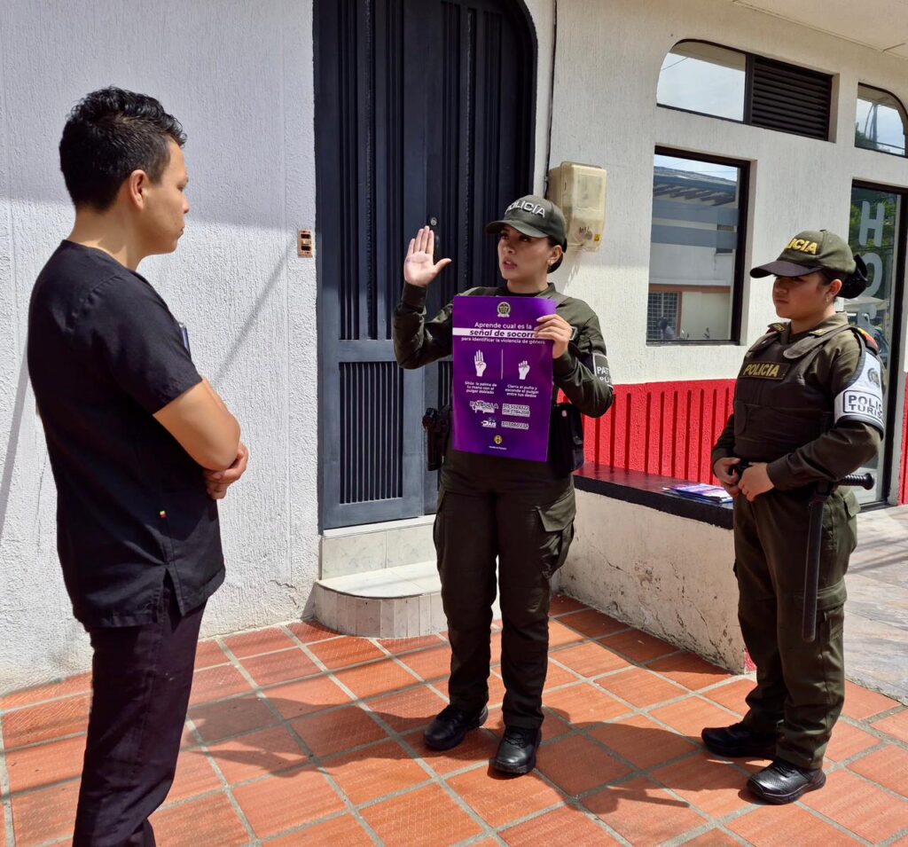 Las acciones se concentraron en hoteles ubicados en el sector del Terminal y en los barrios Pandiguando y La Esmeralda, donde se socializó la estrategia denominada “Señal de Ayuda o Socorro”. Esta herramienta permite que víctimas de violencia de género o personas en riesgo puedan comunicar, mediante gestos o mensajes previamente establecidos, que necesitan asistencia inmediata sin exponerse a mayores peligros.