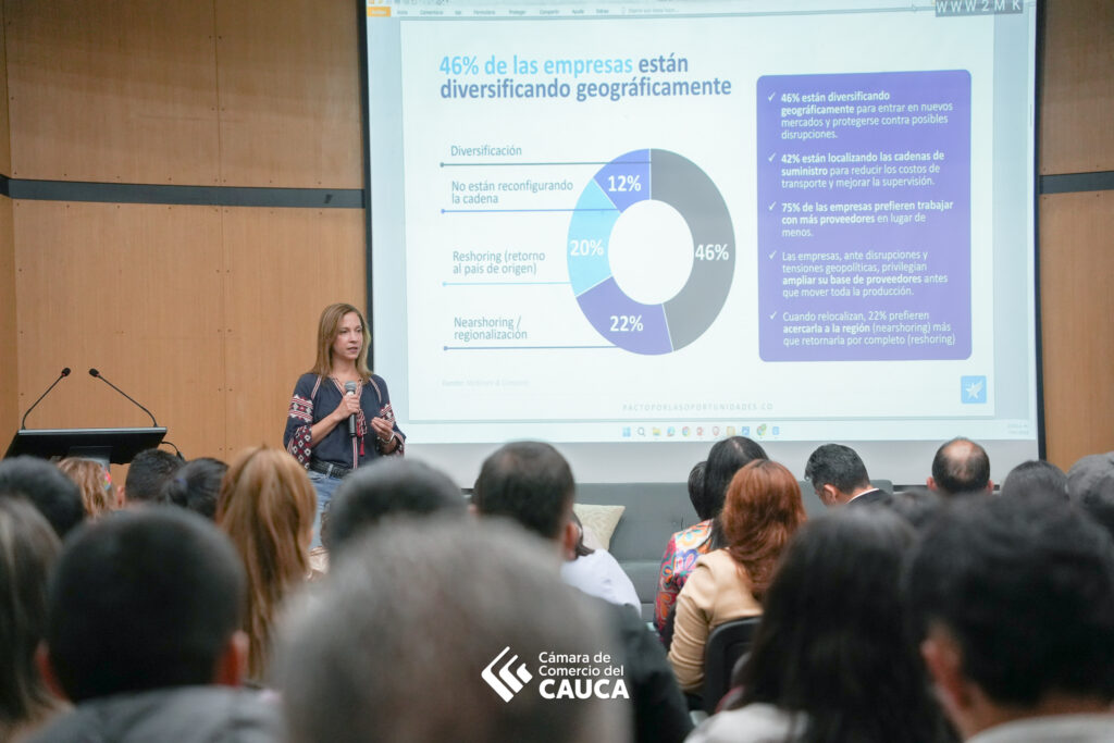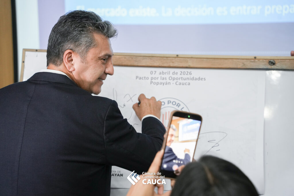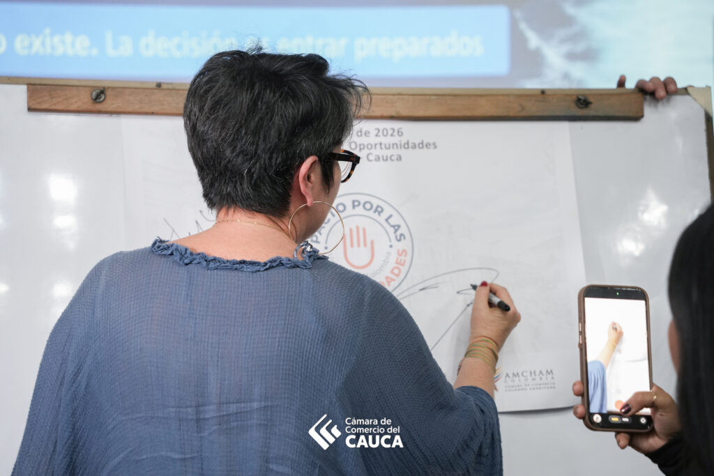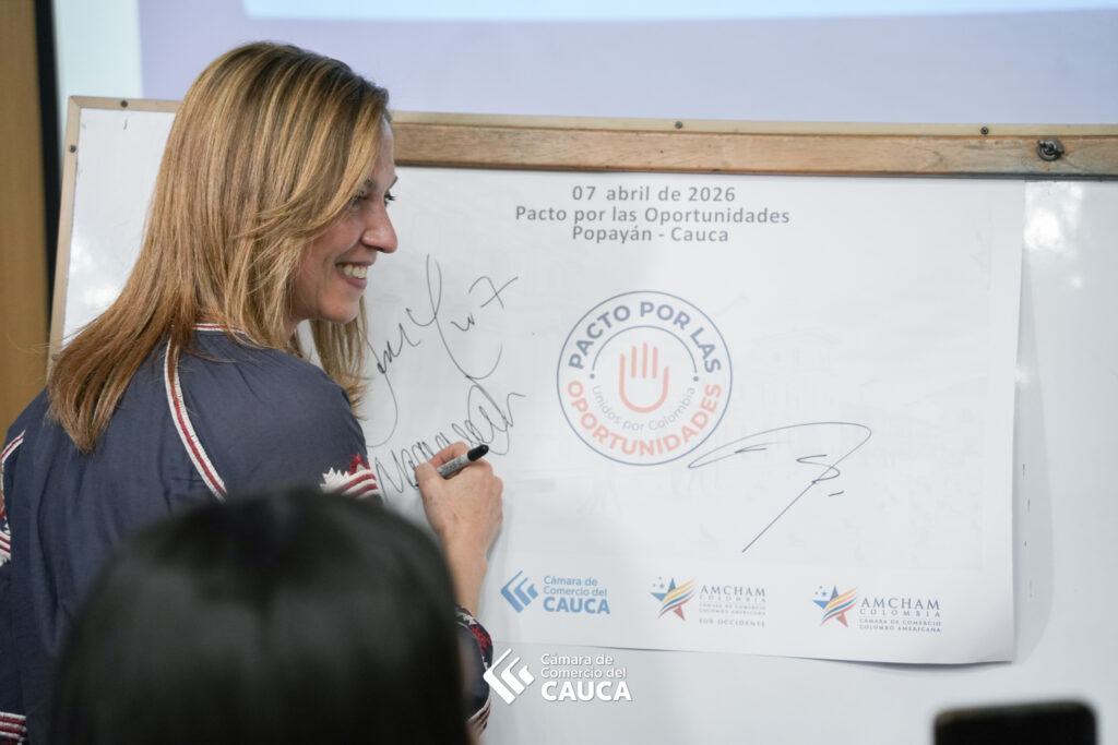 En el foro también participó María Claudia Lacouture, presidenta de la Cámara Colombo Americana, quien firmó en Popayán el denominado Pacto de las Oportunidades junto con la Alcaldía y la Cámara de Comercio del Cauca, con el propósito de abrir nuevas posibilidades de negocios e intercambio comercial con los Estados Unidos. Este acuerdo busca fortalecer el entorno empresarial y ampliar mercados para los emprendedores y productores caucanos.