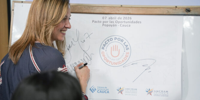 En el foro también participó María Claudia Lacouture, presidenta de la Cámara Colombo Americana, quien firmó en Popayán el denominado Pacto de las Oportunidades junto con la Alcaldía y la Cámara de Comercio del Cauca, con el propósito de abrir nuevas posibilidades de negocios e intercambio comercial con los Estados Unidos. Este acuerdo busca fortalecer el entorno empresarial y ampliar mercados para los emprendedores y productores caucanos.