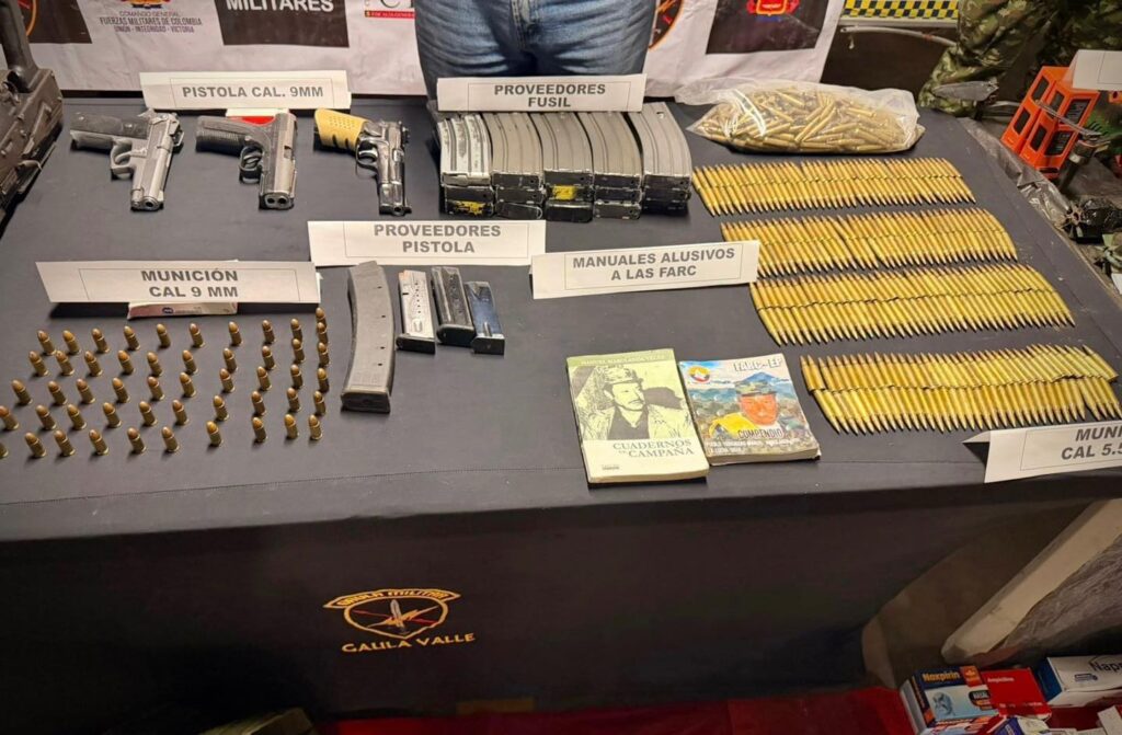 De acuerdo con el Ejército Nacional, durante este operativo desarrollado en zona rural del municipio de Dagua, además se logró la incautación de 8 armas de fuego, 588 cartuchos, 20 proveedores y dispositivos explosivos improvisados aerotransportados, material que sería usado para atentar contra la población y la Fuerza Pública.