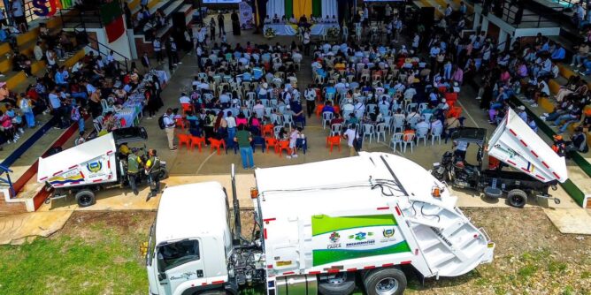 En el componente ambiental, anunció la entrega de un vehículo compactador de residuos sólidos, que prestará servicio tanto en el sector urbano como rural, fortaleciendo la recolección y manejo adecuado de basuras. Además, se entregaron dos vehículos de carga para el servicio comunitario del municipio.