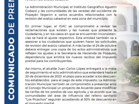 La Administración Municipal, el Instituto Geográfico Agustín Codazzi y las comunidades de las veredas del occidente de Popayán llegaron a…