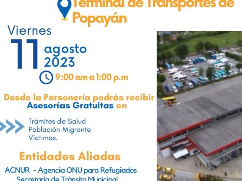 Una nueva jornada descentralizada para prestar asesoría y servicios gratuitos realizará la Personería de Popayán en la terminal de transportes