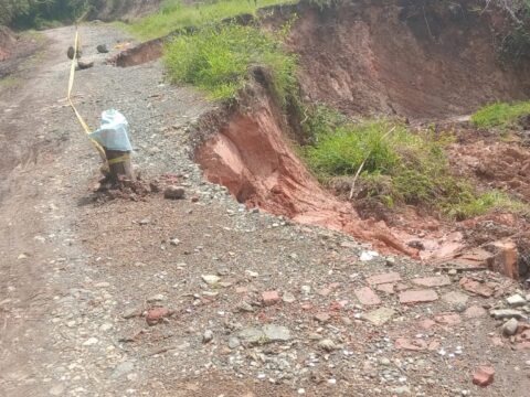 Deslizamiento de tierra amenaza con dejar sin vía a la comunidad de La Cabaña en Timbío, sector de Tupazinga