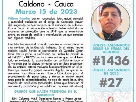 Asesinan a un líder social en Caldono, Cauca