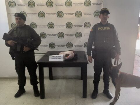 Un canino en detección de narcóticos, halló un maletín con alucinógenos en su interior en Villa Rica, Cauca