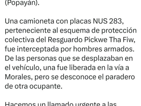 No paran los actos de violencia en el municipio de Inzá, al oriente del Cauca. En los últimos minutos, desde…