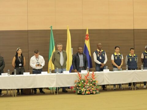 El Gobernador del Cauca, Elías Larrahondo Carabalí junto al Ministro del Interior Luis Fernando Velasco, como Director encargado de la…