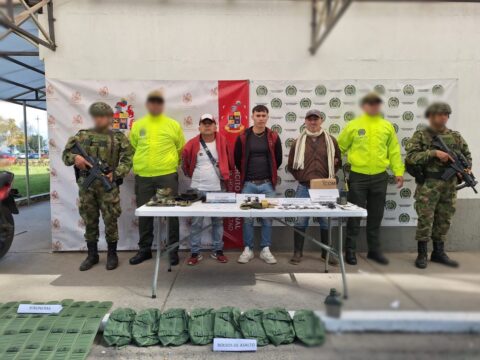 Tres personas fueron capturadas con abundante material de intendencia en Popayán.